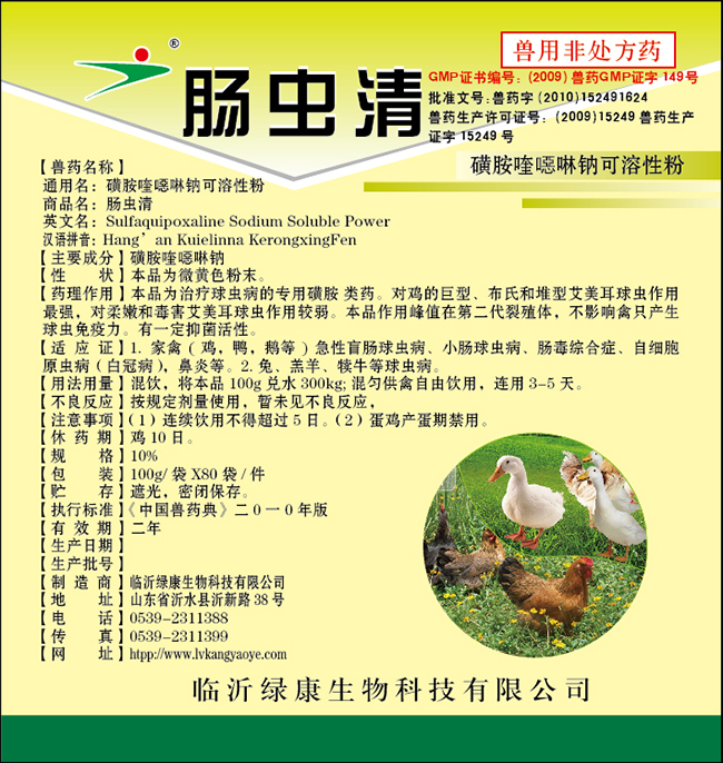 英文名:Sulfaquinoxaline Sodium Soluble Powder